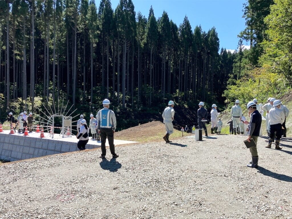 当日は完成した砂防堰堤の見学と共に、本工事の概要、災害への備えとしての役割について説明が行われました。
