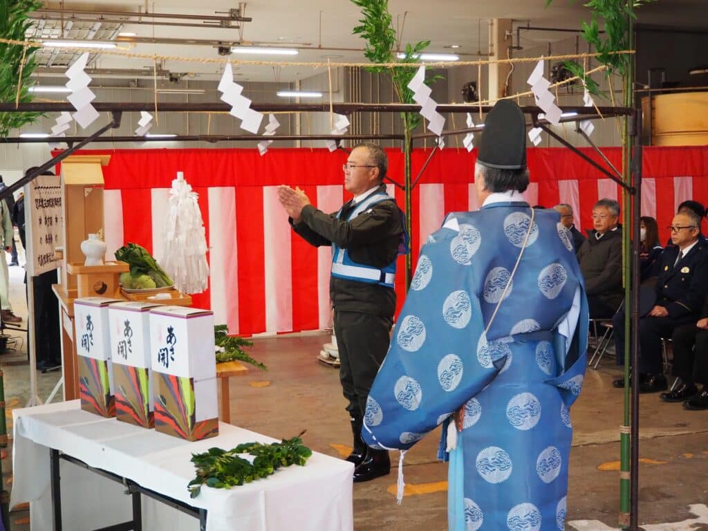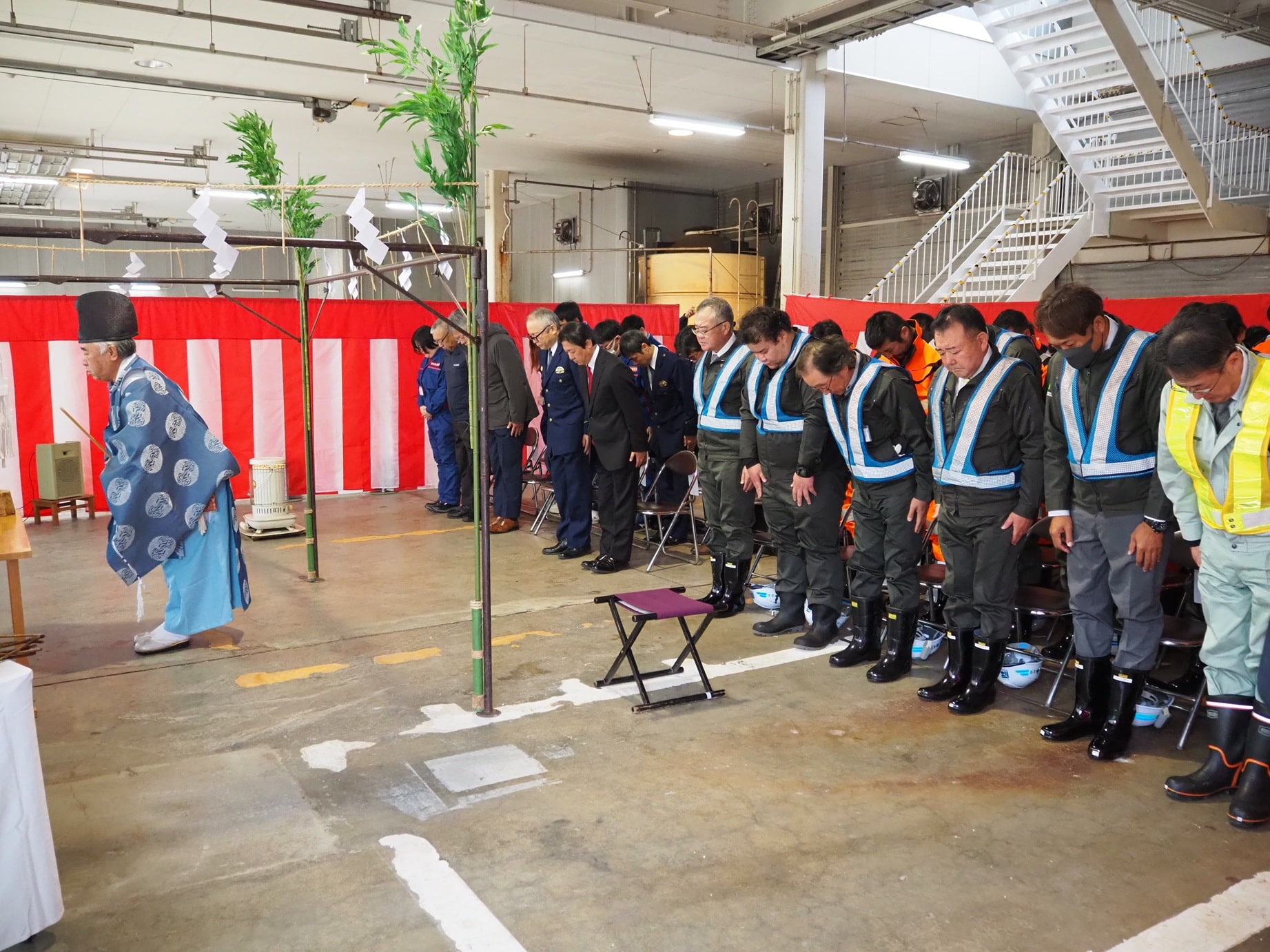 初めに安全祈願式が行われ、無事故無災害で除雪作業を遂行できるよう、参加者一同 安全を祈念しました。